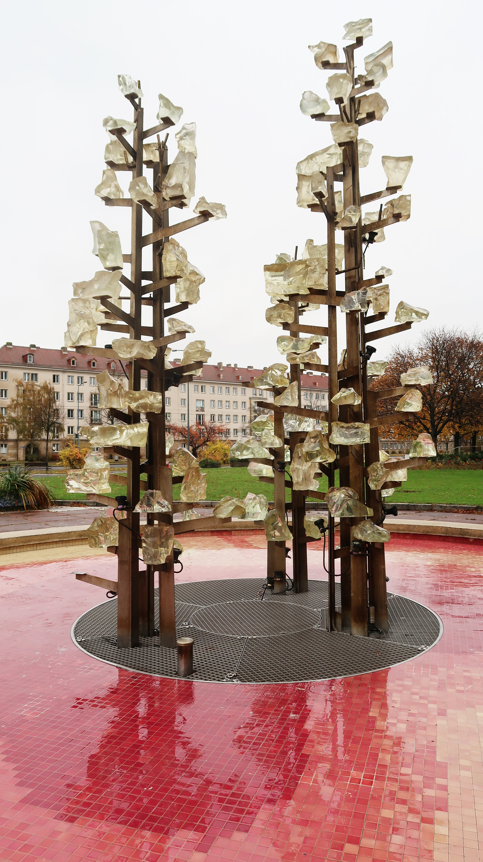Der Glasbrunnenplatz an der Grunaer Straße/ Ecke St. Petersburger Straße in Dresden steht als Gartendenkmal unter Schutz. Bei dem Schmuckplatz mit Brunnen handelt es sich um eine gartenkünstlerisch bedeutsame Platzgestaltung mit einem künstlerisch hochwertigen Brunnen. Er dokumentiert die Gestaltung der 1970er Jahre und ist fast authentisch in seiner bauzeitlichen Anlage erhalten.