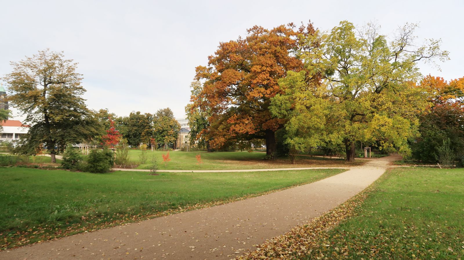 Der Baumbestand im Blüherpark hat ein Alter von bis zu 130 Jahren. Neue Baum- und Strauchpflanzungen wurden daher nach historischen Grundprinzipien ergänzt.
