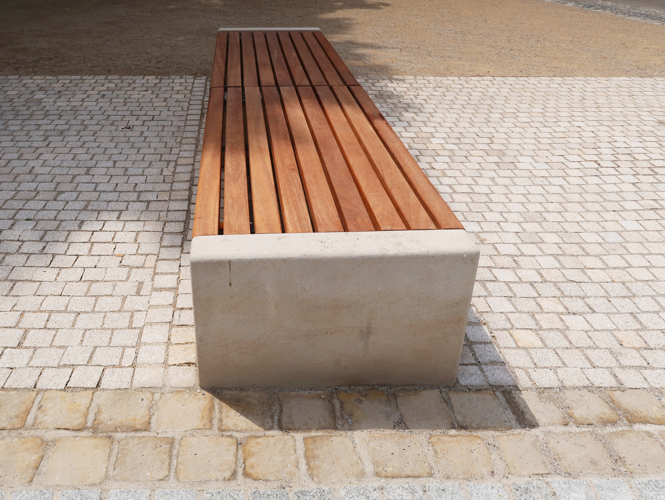 Die bestehenden Wege wurden barrierefrei saniert. Darüber hinaus entstanden neue Wege und Bankplätze, welche den Nordteil des Parkes in seiner Räumlichkeit erlebbar gestalten und zum Verweilen einladen. Als Wegematerialien wurden im Park farblich abgestimmte sandgeschlämmte Wegedecken, Granitpflaster und sandfarbenes Betonpflaster verwendet.