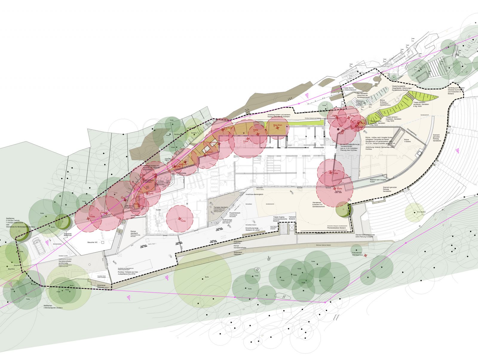 Felsenbühne Rathen, Neubau Funktionsgebäude - Freianlagen, Rathen