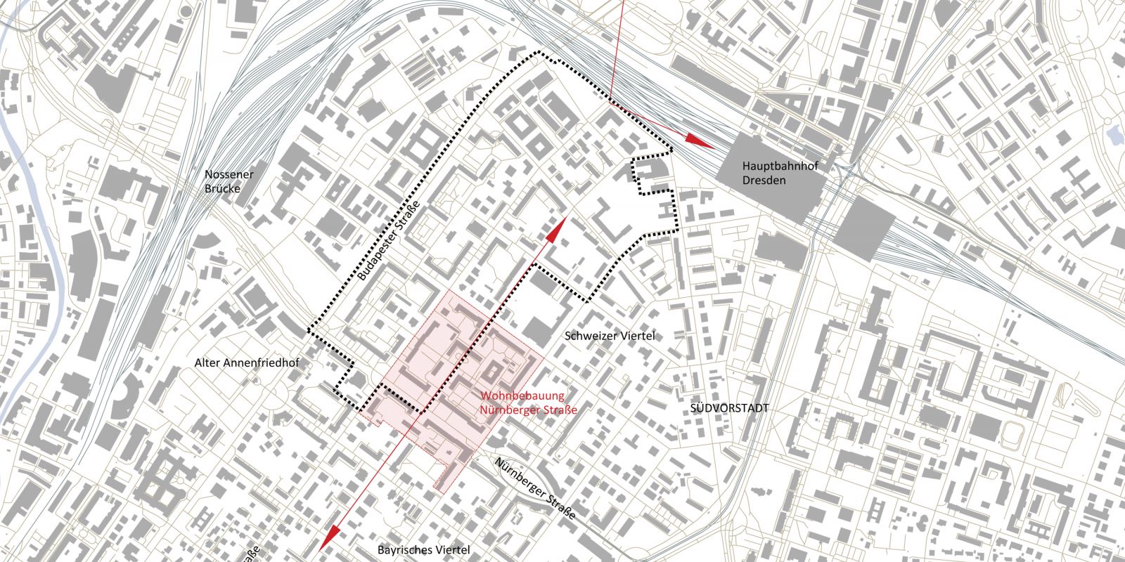 Das Stadtplanungsamt der Landeshauptstadt Dresden beabsichtigt ein Gebiet östlich der Budapester Straße städtebaulich aber auch sozial und ökologisch weiter zu entwickeln. Entsprechend wurde für das Areal in der Dresdner Südvorstadt ein Freiraum- und Innenhofkonzept beauftragt.