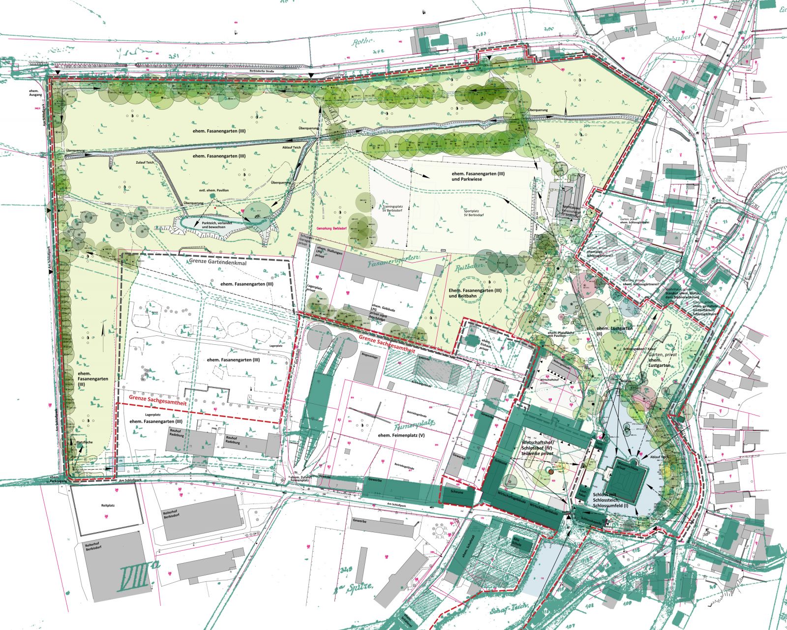 Das Ziel der Beauftragung war die Erstellung einer Gartendenkmalpflegerischen Rahmenkonzeption für den Schlosspark Berbisdorf. Neben der Auswertung einer umfangreichen Recherche zur Geschichte der Anlage und der Bestandsaufnahme sowie Analyse, werden in der Gartendenkmalpflegerischen Zielstellung u.a. Aussagen zu Erhaltungs- und Entwicklungszielen auf der Grundlage der anlagegenetischen Karte zur Erreichung eines definierten Leitbildes formuliert. Dieses Leitbild wird in Form eines Zielplanes für die Parkanlage definiert.