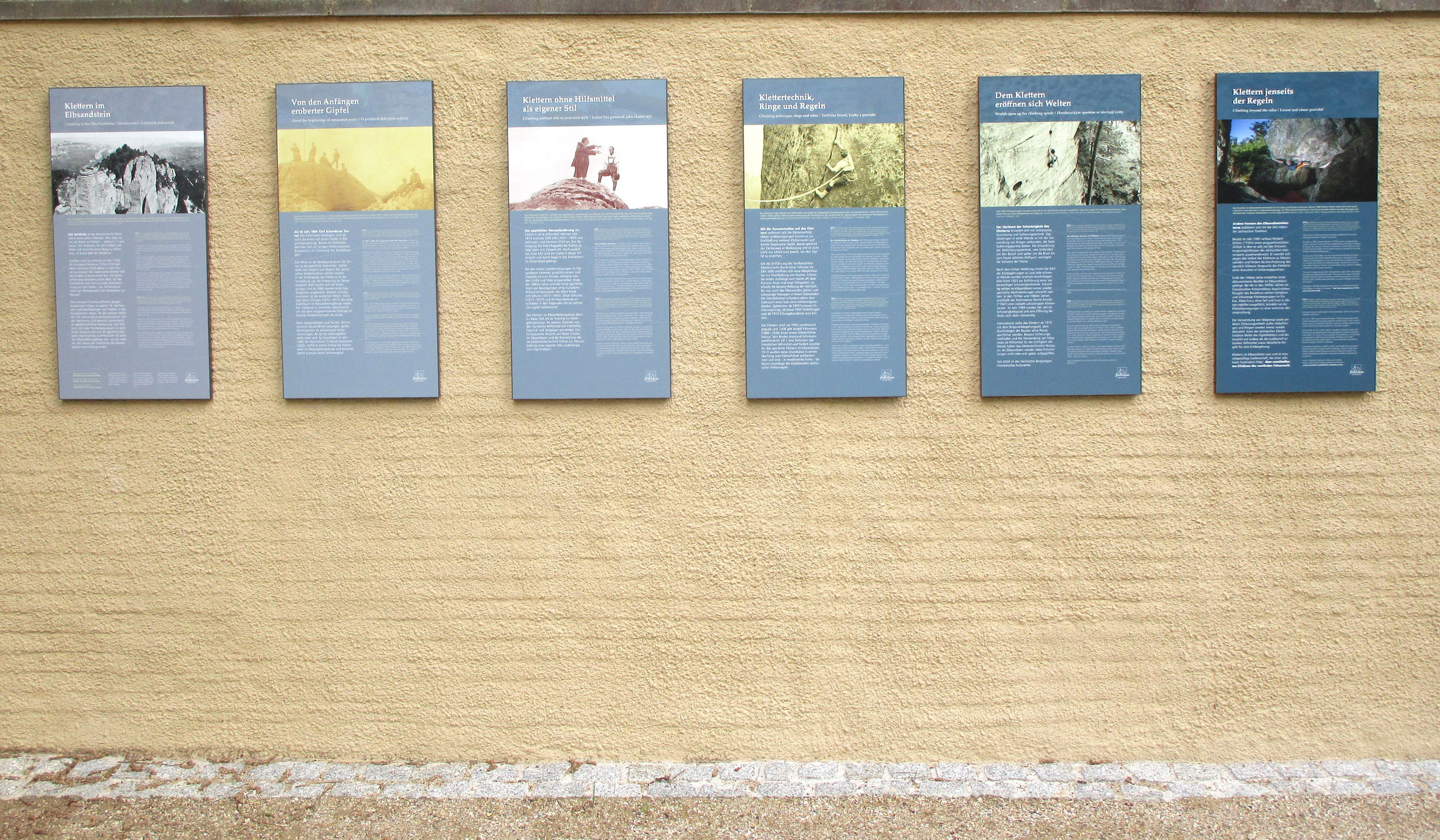 führen über den Platz hinauf zur Gaststätte Schöne Aussicht und zum Röhrenweg sowie hinunter zum Bärengarten und in das Polenztal.