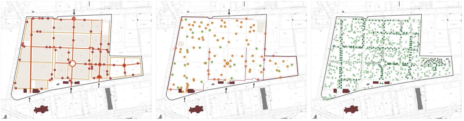 Zu prüfen waren Nutzungsoptionen wie optimierte Quartiersdurchwegungen bzw. die Ausweisung von Rundwegen, eine Erhöhung des Naherholungsangebotes, die Ergänzung von sozialen, „leisen“ Angeboten und die Erweiterung von Umwelt- und kulturellen Bildungsangeboten. Dafür wurden zunächst bereits vorhandene Angebote und das Wirken aktiver Initiativen vor Ort erfasst sowie bestehende Planungen und Konzeptionen zu den drei Friedhofsanlagen zusammengetragen.