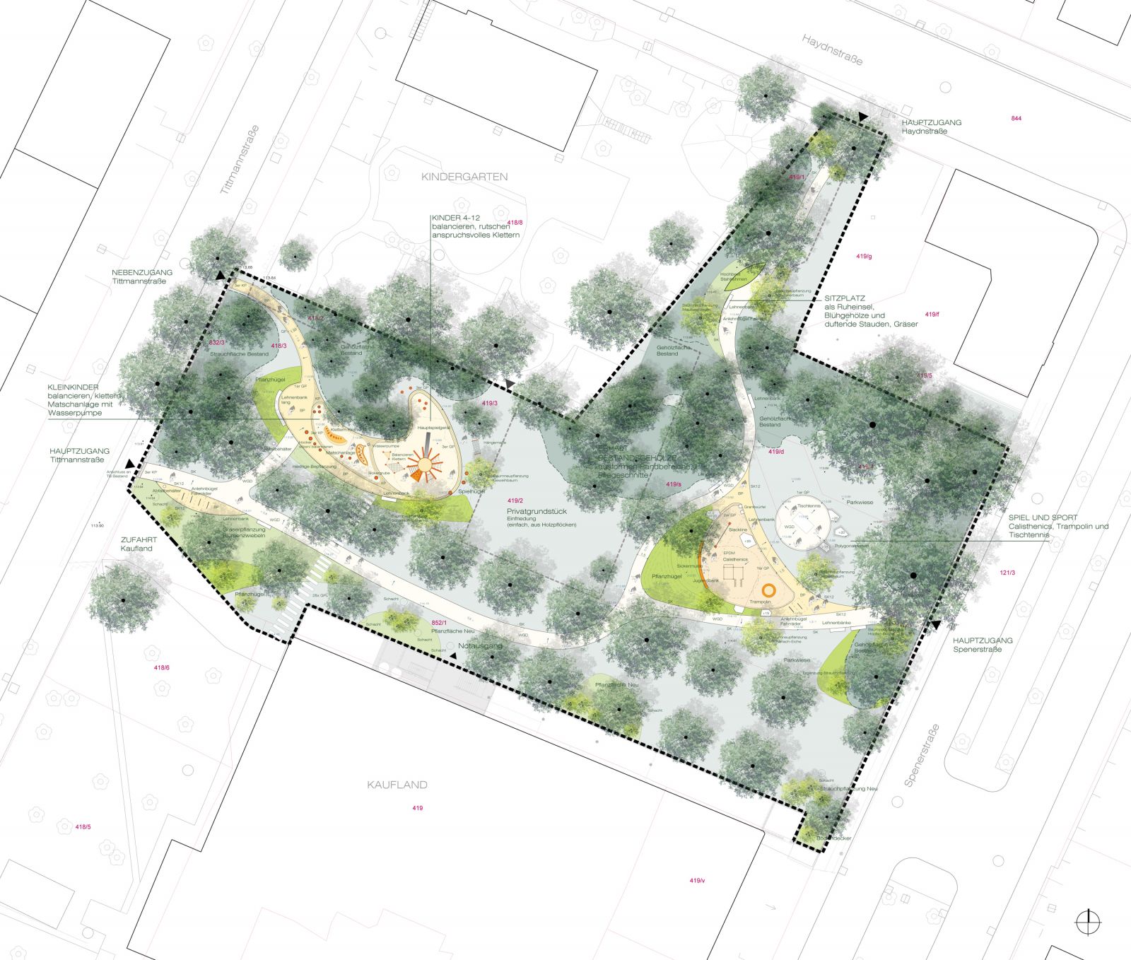 Ziel der Planung war die Errichtung einer neuen öffentlichen Parkanlage in Dresden Striesen zwischen der Tittmannstraße, Spenerstraße, Haydnstraße und dem Kaufland an der Borsbergstraße. Die öffentliche Grünfläche soll ein Treffpunkt für Jung und Alt werden. Da in Striesen und Blasewitz ein hoher Bedarf an öffentlichen Spielplätzen besteht, sollte in die Anlage ein Spielplatz mit multifunktionalen Spielgeräten integriert werden. Das Bestandsgrün soll durch Blütensträucher und Staudenpflanzungen ergänzt werden.