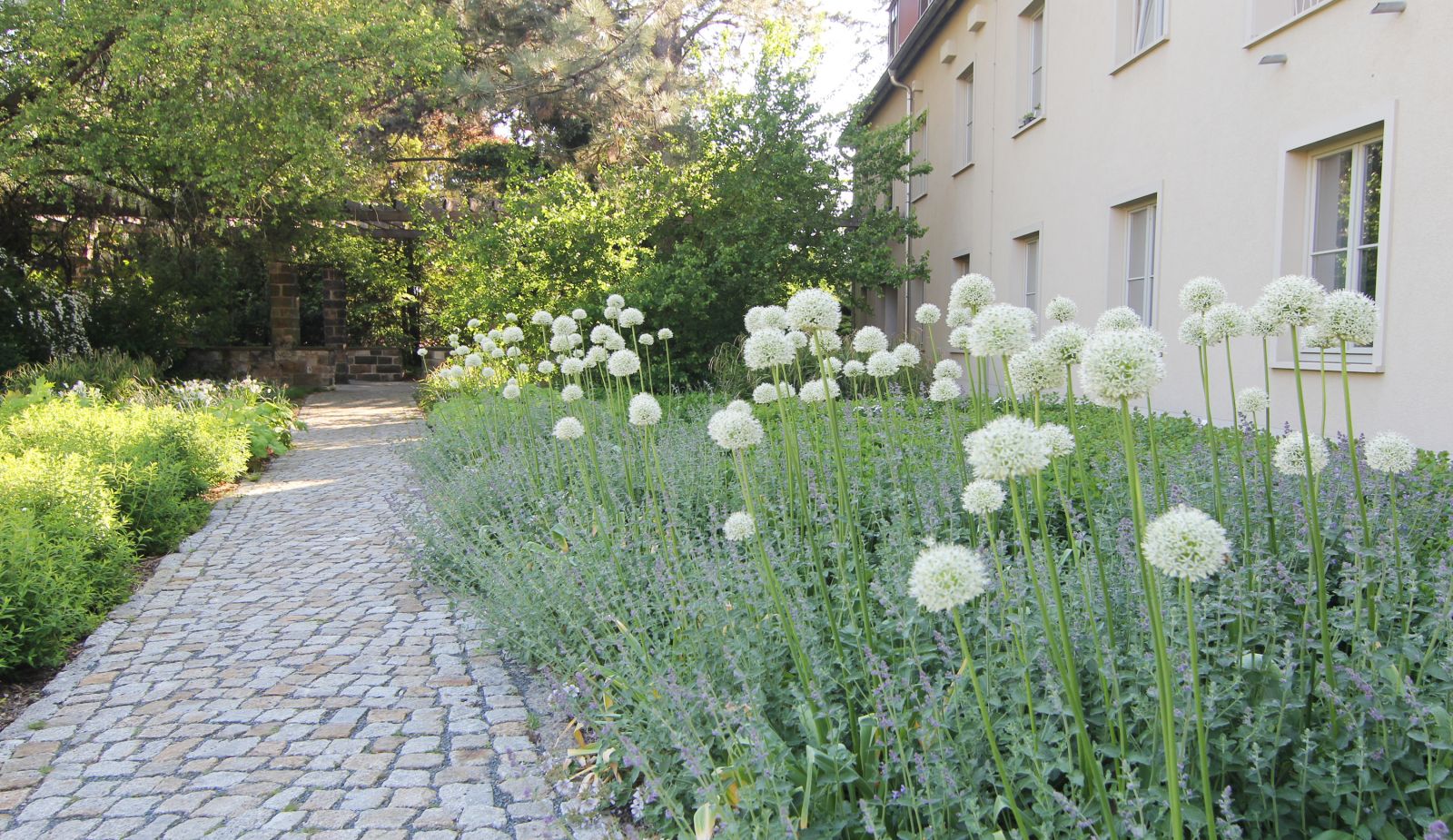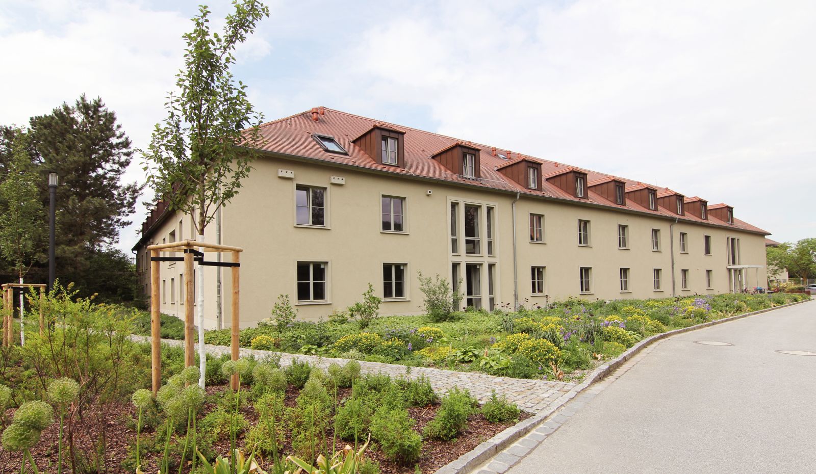 Im Rahmen der „Sanierung Wohnheim mit Außenanlagen“ der überbetrieblichen Ausbildungsstätte für Gärtner waren am Standort in Dresden-Pillnitz die Außenanlagen umzugestalten. Es handelt sich um eine Fachschule mit Vorlesungs- und öffentlichem Veranstaltungsprogramm sowie Mensa, mit Aufenthaltsräumen im Wohnheim sowie Klubräumen in angrenzenden Gebäuden. In der Liegenschaft wurden die Außenanlagen für die Lehrlinge und angehenden Meister, welche im Wohnheim untergebracht werden, neugestaltet.