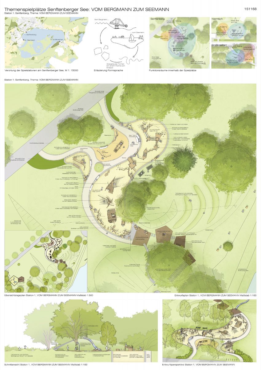 Aufgabe des ausgelobten Wettbewerbs war die Entwicklung und Neugestaltung mehrerer Themenspielplätze um den Senftenberger See mit dem Ziel die Aufenthaltsqualität und das Spielen für eine möglichst breitgefächterte Auswahl an Nutzergruppen in dem beliebten Naherholungsgebiet